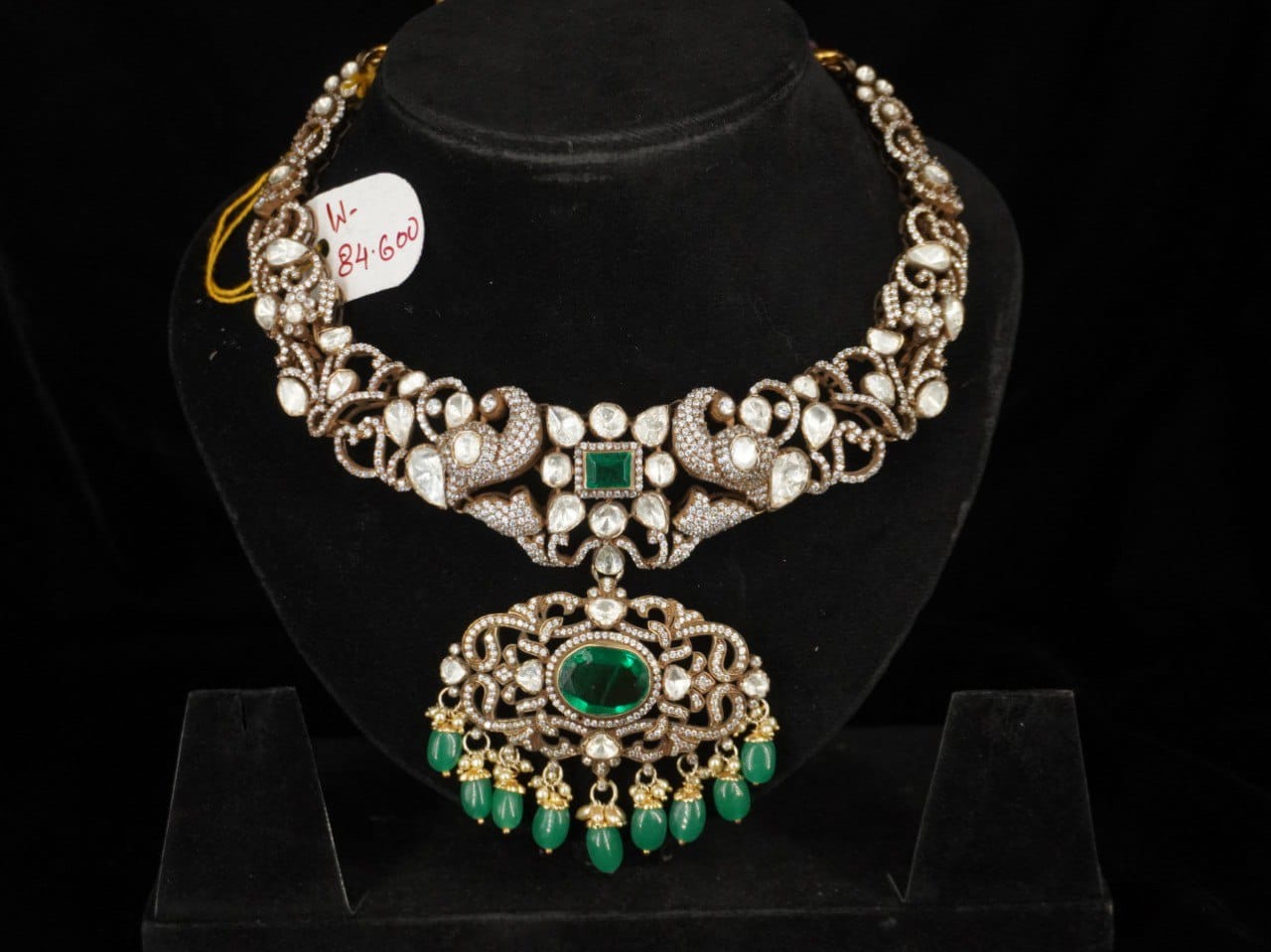 This exquisite necklace set is crafted with precision and elegance, featuring a stunning combination of shimmering stones and intricate detailing. Perfect for weddings, parties, or festive occasions, it enhances your overall look with timeless grace. The matching earrings complete the set, adding a touch of sophistication and luxury to any outfit.