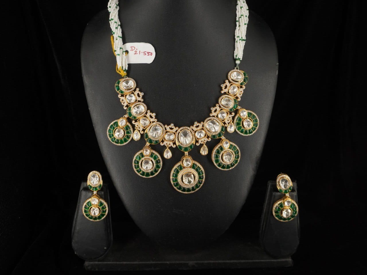 This exquisite necklace set is crafted with precision and elegance, featuring a stunning combination of shimmering stones and intricate detailing. Perfect for weddings, parties, or festive occasions, it enhances your overall look with timeless grace. The matching earrings complete the set, adding a touch of sophistication and luxury to any outfit.