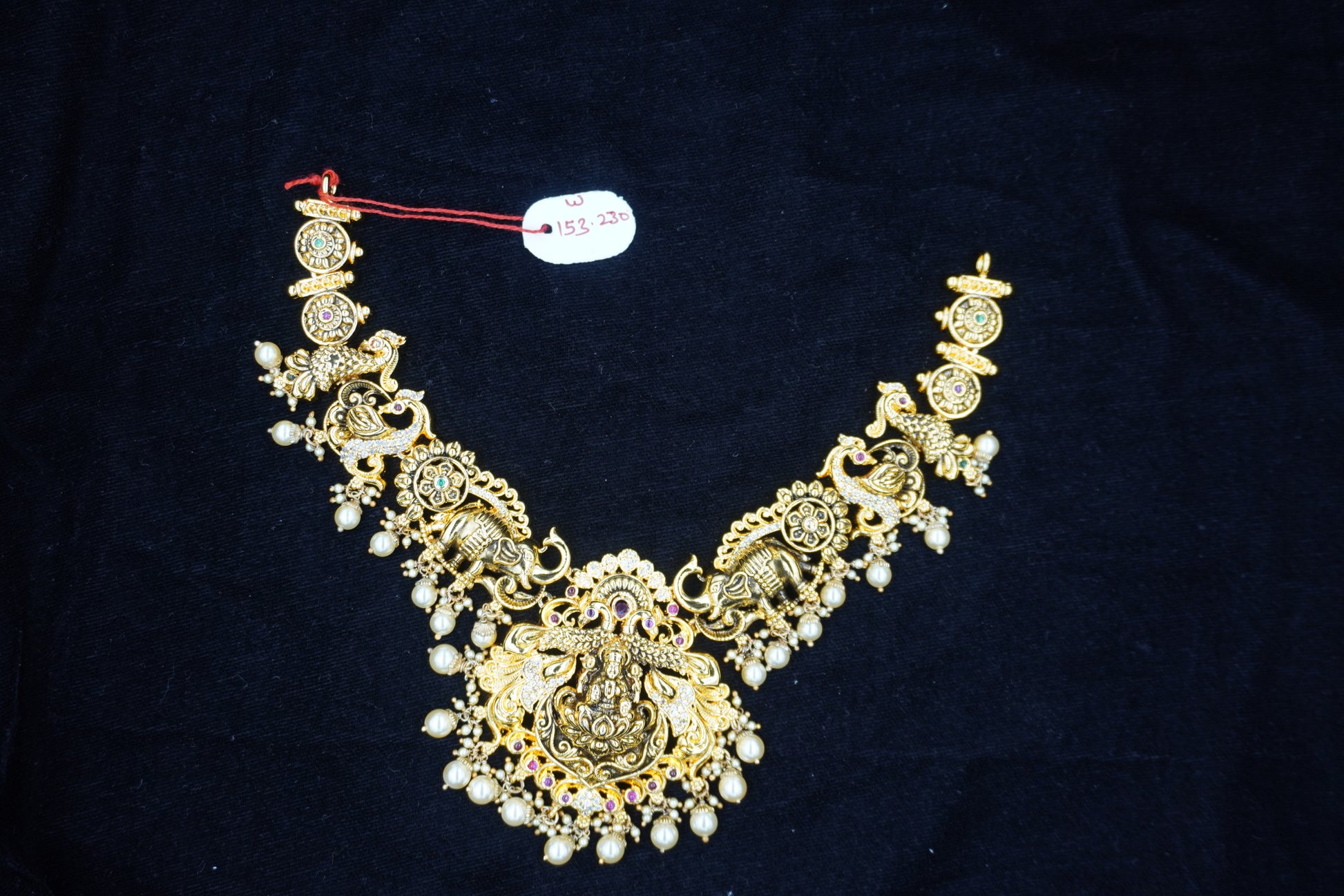 This exquisite necklace set is crafted with precision and elegance, featuring a stunning combination of shimmering stones and intricate detailing. Perfect for weddings, parties, or festive occasions, it enhances your overall look with timeless grace. The matching earrings complete the set, adding a touch of sophistication and luxury to any outfit.
